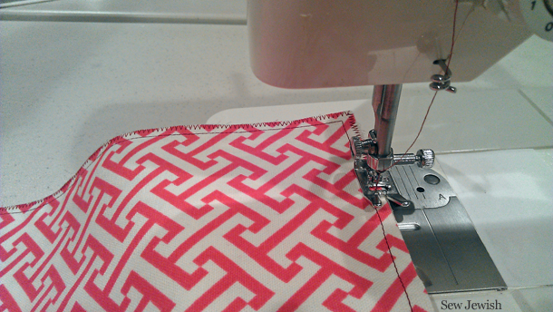 Sew around the cover ¼” (7mm) from the edge. Finish the edges with zigzag stitches.