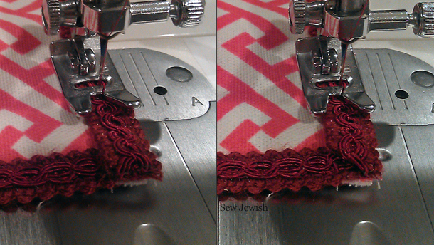 Sew the trim to the cover along the middle of the trim, using a fairly long stitch.