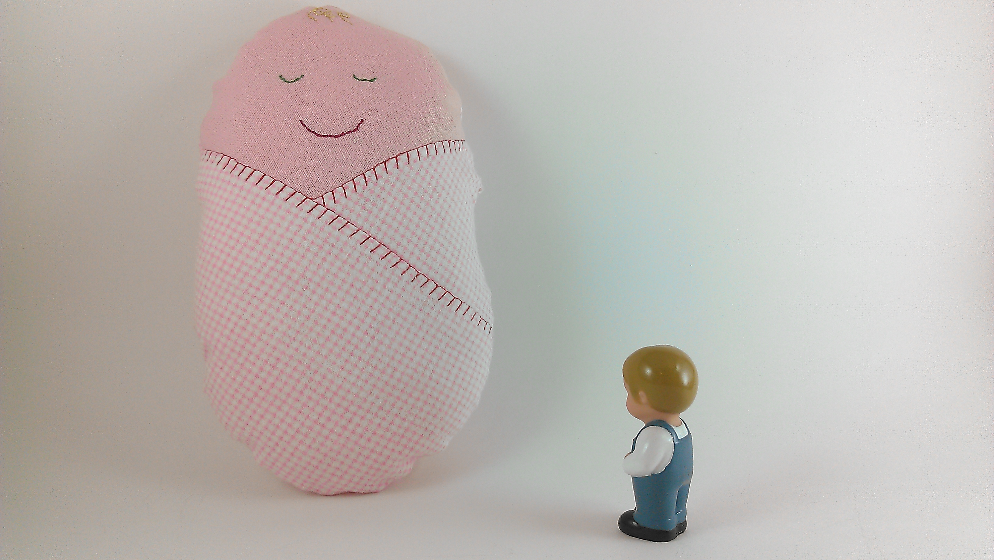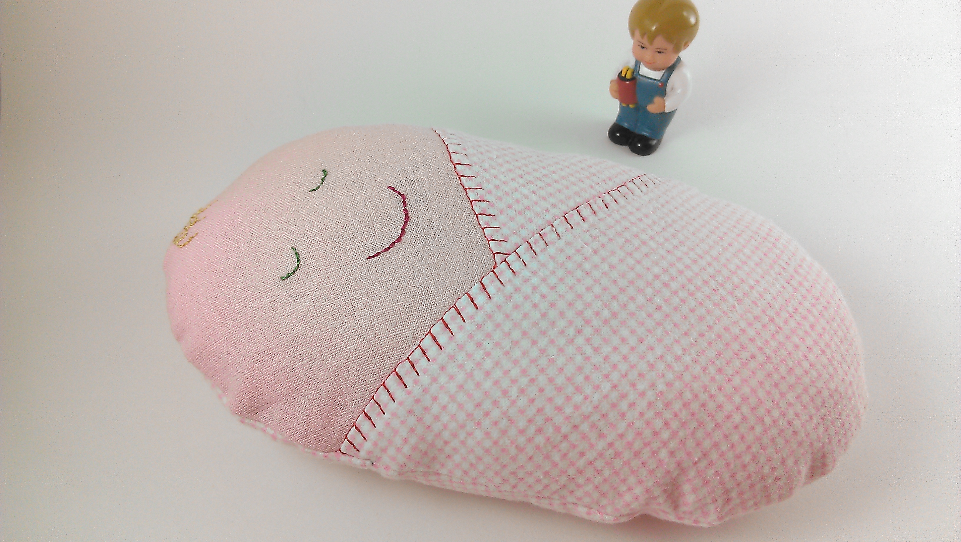 Eventually, I realized I was asking the wrong question. The right question wasn’t what Jewish gift to bring, but what would make a three-year-old happy. And sometimes all a child wants is something to carry around, cuddle, and call their own. That realization made it easy to decide that I wanted to make a cross between a stuffed doll and a pillow. A quick online search turned up this cuddly pattern called “My Baby Buddy” by Lucy Ferguson of My Funny Buddy.