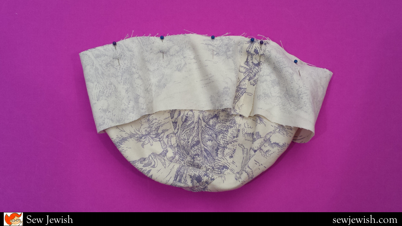 Sew the Crown pieces of the lining together in the same way as for the hat, but don’t topstitch the seam allowances. When sewing the two halves of the lining top together, leave a 2 1/2″ (6cm) opening.