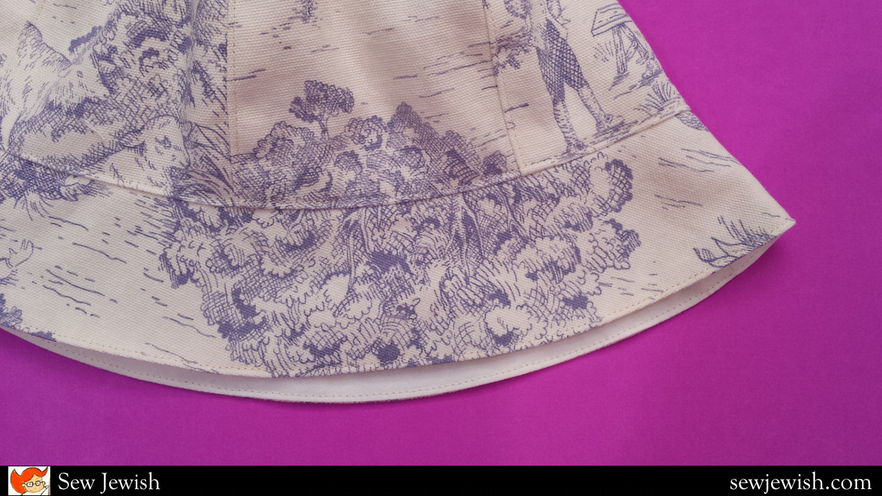 Does the sunny weather put you in the mood for a new summer hat like it does us? Then we have a free printable pattern for you. This hat looks super cute in the summer sun, and it’s also synagogue worthy when you sew it up in a classically formal print like a chintzy floral or this toile. To really send the adorable factor over the top, add a purchased flower pin.