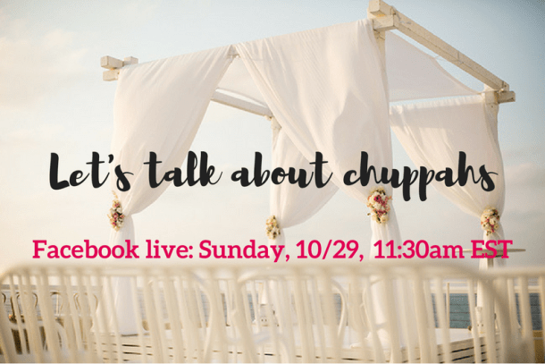 Is there a chuppah –or chuppah making– in your future? Join Rabbi Jillian Cameron of InterfaithFamily/Boston and me this Sunday LIVE on Facebook as we chat about everything you didn’t think you needed to know about the wedding canopy – chuppah! From logistics to artistry to incorporating interfaith family members in the process and everything in between, come with questions or just to listen.